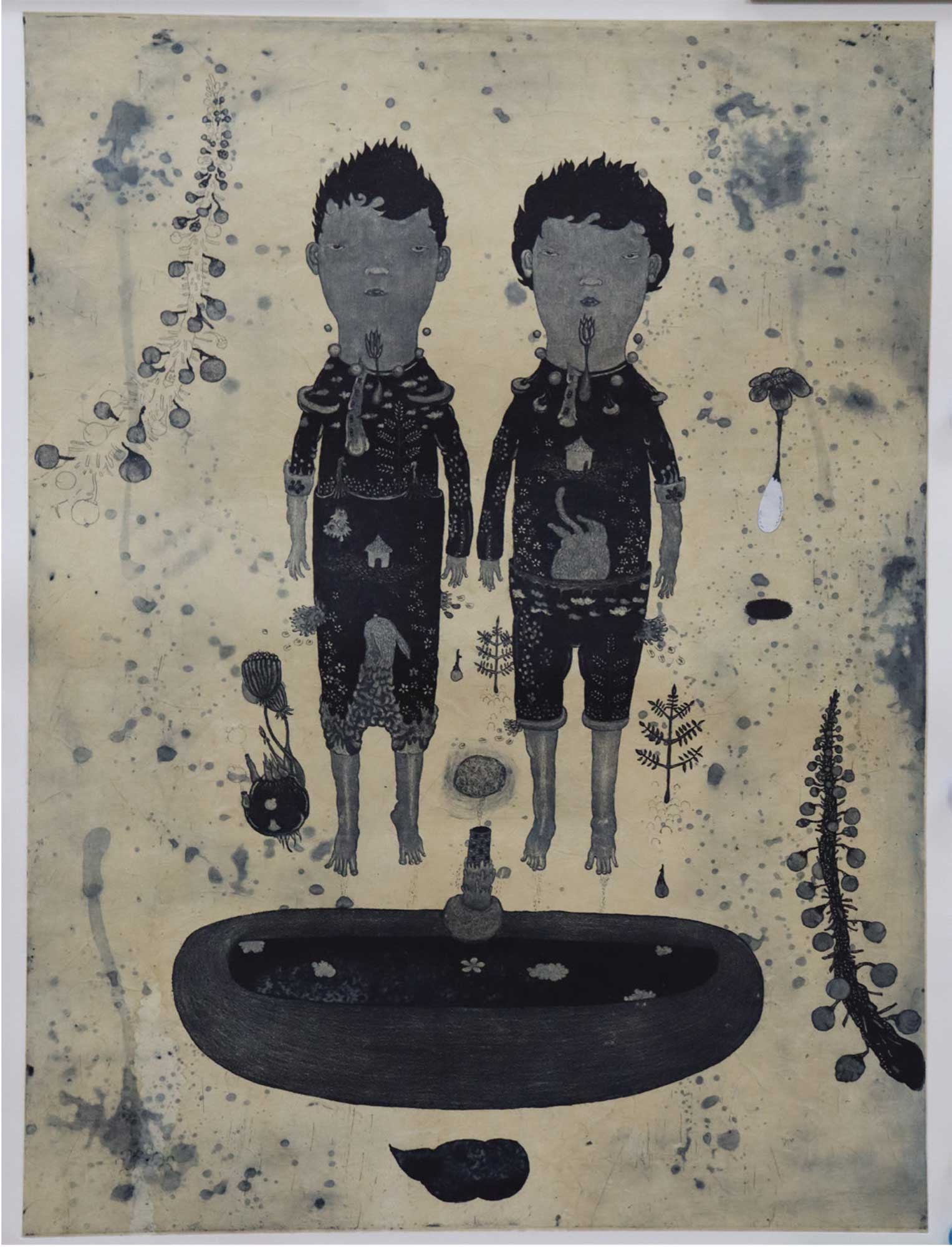 Akimitsu Tamawake: is a printmaker based in Toyama, Japan. His works are known for their poetic, narrative, and broad worldview. The works have won awards in Taiwan, Italy, and have been exhibited all over the world. After completing graduated Master’s Program at the Toyama University, he worked at art college in Thailand, Japanese language school in Brazil. Currently, He is a teacher who teaches art to children with severe disabilities. Many experiences became the basis of his etching work and created his unique worldview.