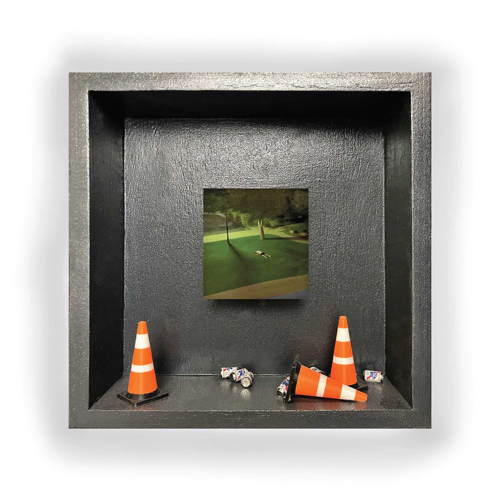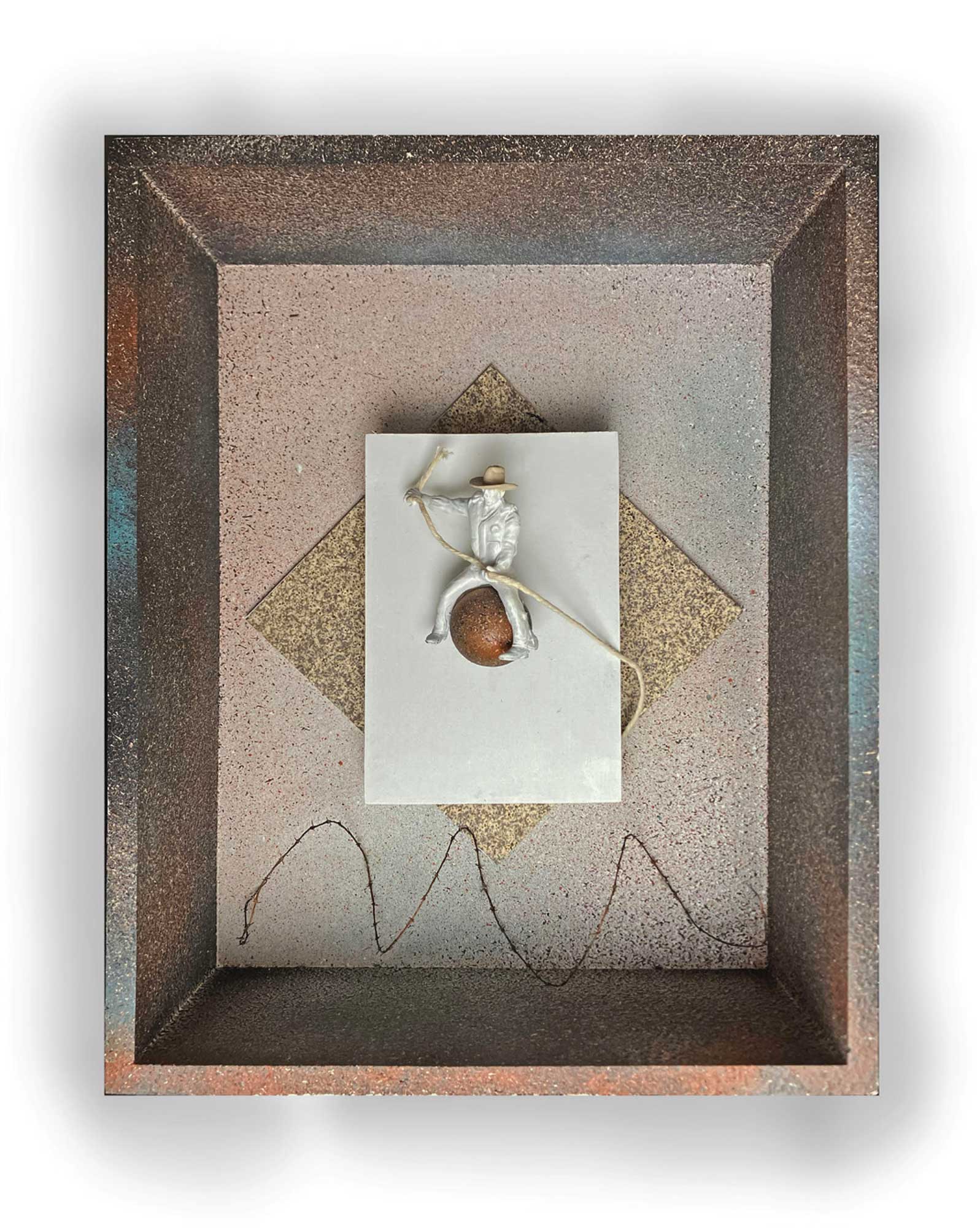 Christopher Hadden: is a graphic designer based in Portland, Maine. He creates mixed-media assemblage works that explore from whimsical to more structural relationships. Through layered materials and visual relationships, his work reflects a quiet curiosity about form, balance, and the unexpected dialogue between objects.