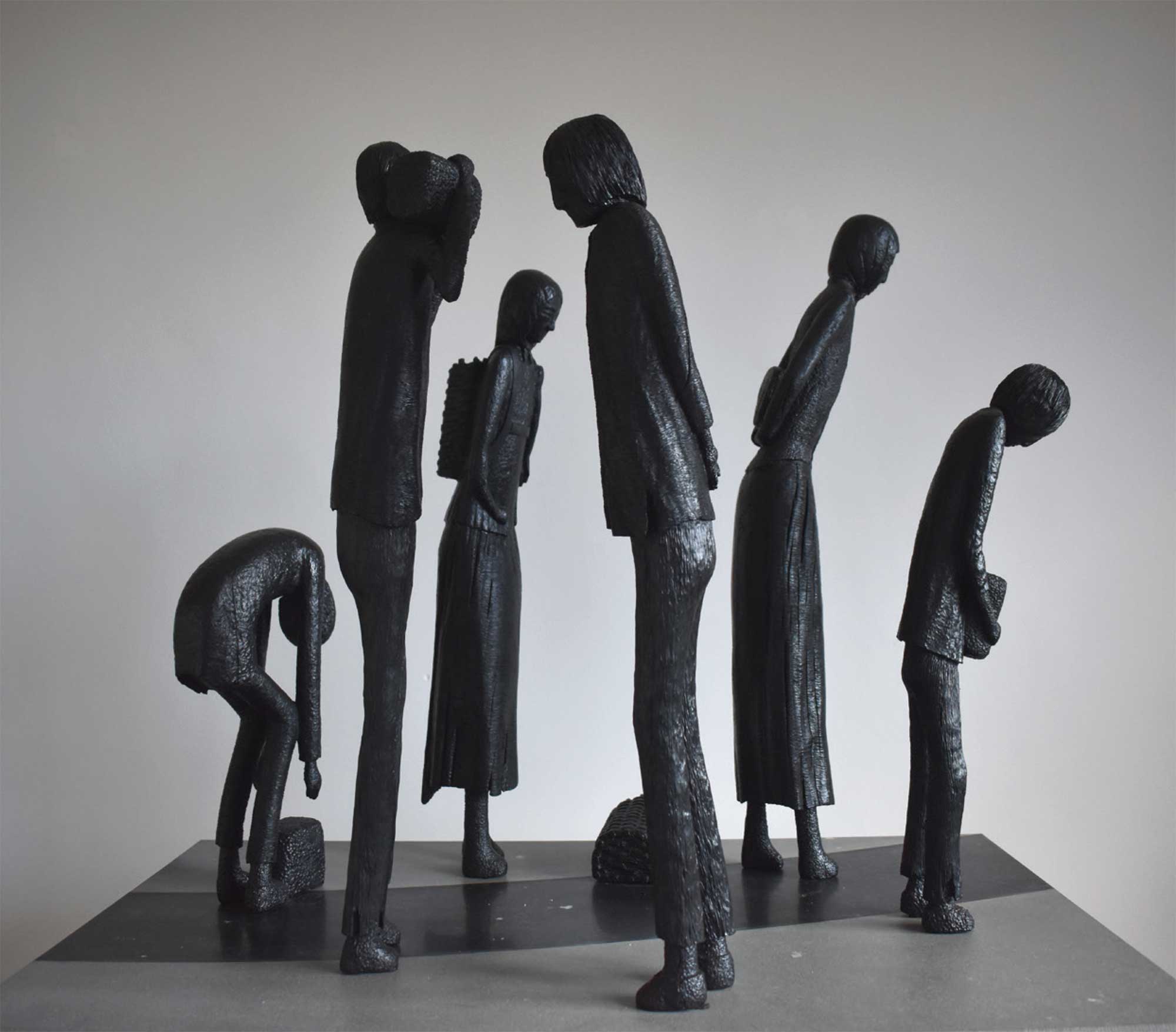 Kieran Tuohy: is an Irish sculptor known for his unique use of bog oak, a medium that has been preserved in Ireland’s peat bogs. His work often reflects Irish history, particularly the Great Famine, through intricate sculptures that tell poignant stories of loss and resilience. Born in Galway in 1953, he moved to England at a young age and later returned to Ireland, where he began his artistic journey. His sculptures are characterized by their emotional depth and the use of natural wood textures, capturing the essence of Ireland’s tragic past.
